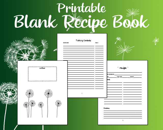 Stop scribbling your new favorite recipes on scraps of paper and get this dandelion themed printable blank recipe book. Write down your top 50 favorite recipes in this book.
